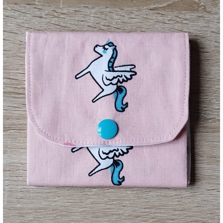 Ce petit porte-monnaie ou carte est cousu dans du tissu en coton et renforcé afin de rester rigide.